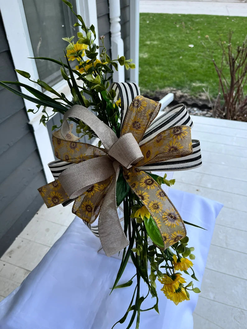 This adorable lantern sunflower centerpiece features a solar powered lantern and i added whispy greenery, sunflower picks and a big bow. The lantern is plastic but super cute. It is about 18 inches tall and 14 inches wide with the greenery. Super super cute piece. It would look great on your table or as home decor. For shipping go through her Etsy shop at  https://www.etsy.com/listing/1472388933/summer-lantern-centerpiece-spring-flower?click_key=8bfe963222ef5aca493080006c146e3c456bc72e%3A1472388933&click_sum=f6455199&ref=shop_home_active_15&frs=1&cns=1&sts=1